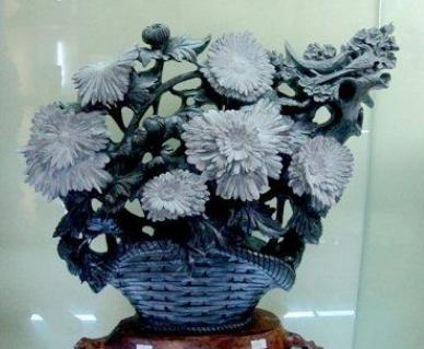 3.浏阳菊花石雕有的还配上动物、人物来表现故事情节;有的雕松、竹、梅、兰“四君子”,赞烦离风亮节。这些美丽的石雄作品,有的是供观赏的艺术品,有的则是兼具实用价值的砚台、水池、笔洗、花瓶。